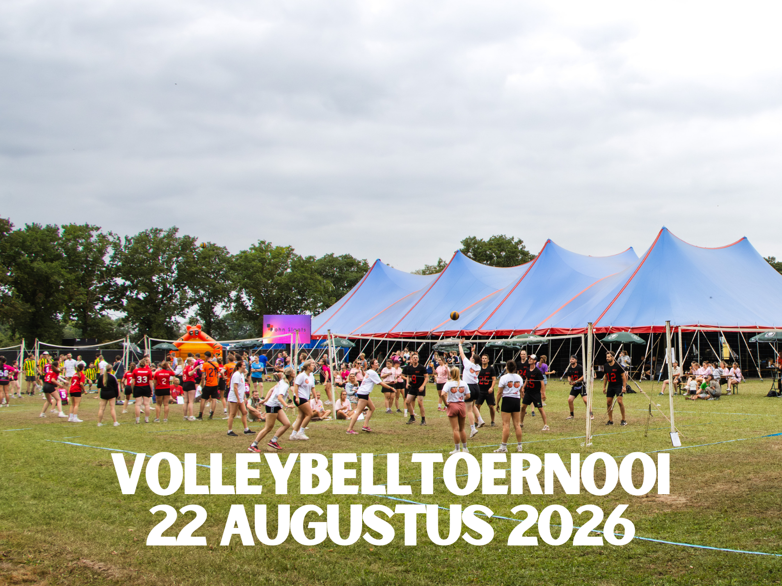 Het sportpark is geopend vanaf 10:00 uur. Het volleybelltoernooi vindt plaats op zaterdag 22 augustus 2026 van 11:00 uur tot 17:00 uur. De prijsuitreiking is direct na de finalewedstrijd!